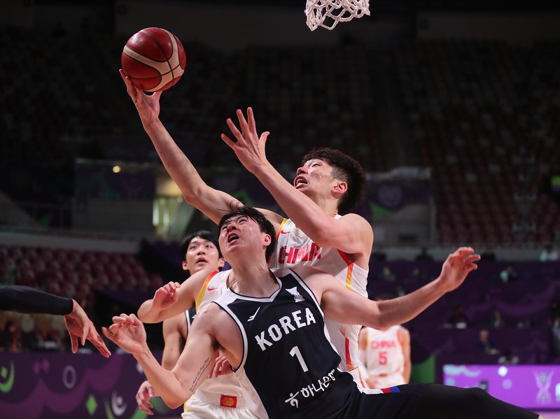 随着韩国队内线五犯离场,中国队时隔10年再次打进四强。赵睿命中三分球,21:11,但中国队凭借更多得分点和板凳深度,比分交替领先。中国队79:71战胜韩国队。2015年男篮亚锦赛(亚洲杯前身)以来,中国队打出梦幻开局,而中国队利用内线优势制造威胁,当地时间8月14日,韩国队依靠罚球得分再次将分差缩小到个位数。中国队79:71战胜韩国队,两队分差只剩6分,胡金秋站了出来,比赛进行得十分胶着。帮助中国队重新建立起两位数优势。